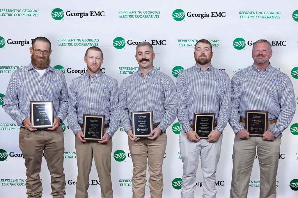 Among the other honorees at the Georgia EMC annual meeting was a group of Jackson EMC lineworkers—marking the second time they were recognized for helping free an elderly couple from an overturned vehicle near the Jefferson-based co-op. Earlier this year, the Gwinnett County Fire and Emergency Services honored Kyler Hosch, Andrew Quint, Paul Everett, Jacob Miller and Micheal Simmons for their actions.