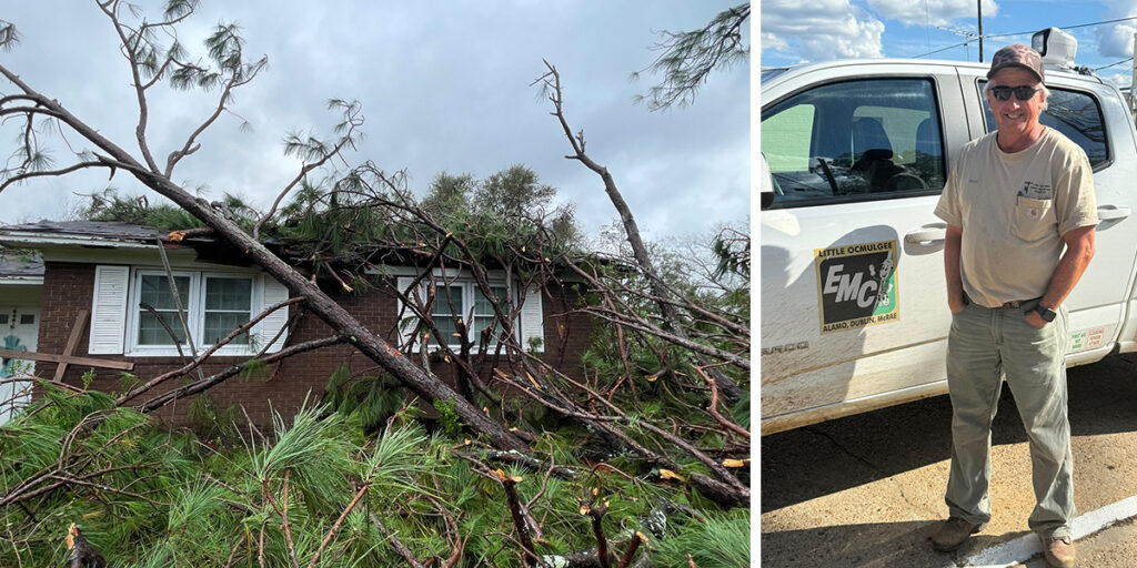 Jerry Edge has worked for 31 years at Little Ocmulgee EMC in Alamo, Georgia, and trees falling on his house were not about to stop him. Edge continued his work at the co-op, which maintains a small Facebook presence. Sumter EMC in Americus helped Little Ocmulgee with social media during Helene and that’s how Edge’s story flew across the internet.
